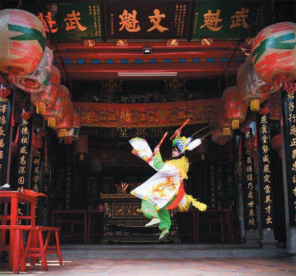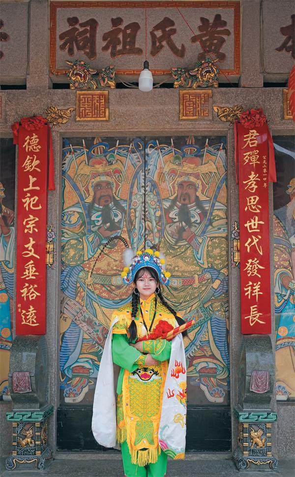 锣鼓喧天中,专注表演的黄燕婵顾不上看游街时的热闹场景,只记得表演结束后,自己和队友被一波又一波的游客拉去合影。在B站、抖音、小红书、微博上流传的影像里,她身着英歌服,在古老祠堂前凌空翻,古老与青春,在那一刻交融贯通。