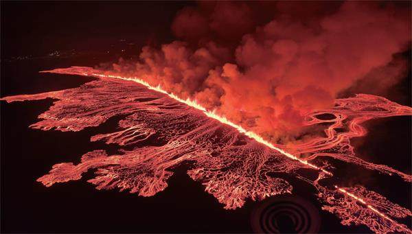 当地时间2024年3月16日晚,冰岛雷克雅内斯半岛火山喷发,滾滚浓烟和流动的熔岩从火山裂缝中喷涌而出。该火山近几个月已多次喷发。
