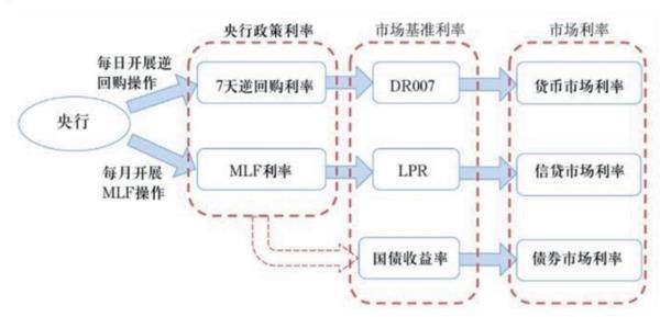 中国的利率体系主要包括存贷款利率体系和金融市场利率体系。存贷款利率体系以银行为中介方,以居民、企业和政府部门为参与方,银行通过吸收存款的方式筹措资金以满足贷款需求,存贷款业务对应产生各类存款利率和贷款利率。金融市场利率自上由央行为起点通过公开市场操作进行资金投放与回笼,自下由政府、企业、金融机构等发行债券、股票吸收资金并通过债券偿还、股票分红和回购等形式返还资金,金融市场通过各类资产及衍生品交易产生金融市场利率。而连接这两大利率体系的核心是银行,银行通过FTP定价机制将存贷款利率与贷款利率相连接,也在存贷款利率与金融市场利率之间建立比价关系。