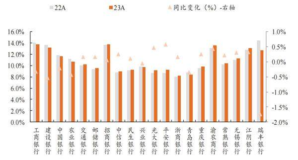 上市银行2023年全年实现利息净收入同比下降2.8%(前三季度同比下降1.9%),LPR 的下调叠加存量按揭加点的调整使得净利息收入的负增长缺口进一步扩大。