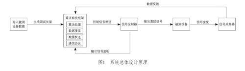 本方案的测试流程始于数据处理算法系统,它包含激励信号、预期输出响应和任何必要辅助信号等测试矢量的数据,能够将相应的输出数据传输至信号发射器当中,并将该算法系统作为控制中心,驱动信号源逐步发出递增或递减的信号序列,模拟实际工作环境中的信号变化。在此过程中,每次信号输出后,系统都能即时捕获被测设备在输出端口反馈的开关量信号,以反映设备对输入信号的响应状态。