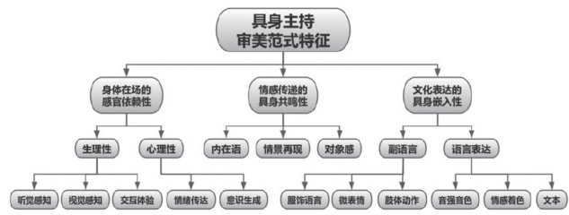 主持创作作为传播活动的特殊形态,其审美范式长期以来建立在具身性这一根本属性上。梅洛·庞蒂提出的具身认知理论强调:身体不仅是物理存在,更是主体感知世界和表达意义的根本媒介。在传统主持创作中,主持人的身体在场构成了审美体验的核心要素,这种具身审美范式呈现出三重关联的典型特征(如图1)。