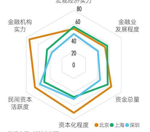 本次比拼中,北京、上海、深圳作为全国金融中心,在宏观经济实力、金融业发展程度、资金总量、资本化程度、民间资本活跃度、金融机构实力六个维度上均取得高分。其中,北京依旧稳居首位,综合实力得分最高。北京作为首都,是全国的政治、文化、国际交往和科技创新中心,拥有强大的资源调配能力,金融实力也十分强劲。