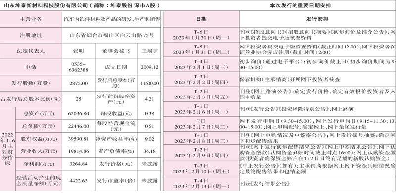 坤泰股份(001260) 申购代码001260 申购日期2.7