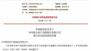 1月30日,中国银保监会发布了《关于中华联合财险高兴华任职资格的批复》,核准了高兴华中华联合财险董事长的任职资格。