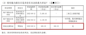 据报告显示,在偿付能力报告日是否存在未决的重大诉讼一项中,有一起诉讼方为罗桂友,诉讼原因为劳动人事争议,诉讼标的金额、估计损失金额均为450.25万元。