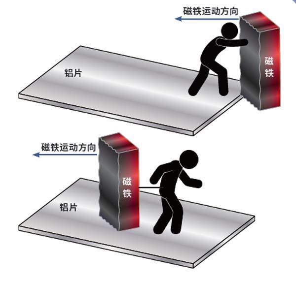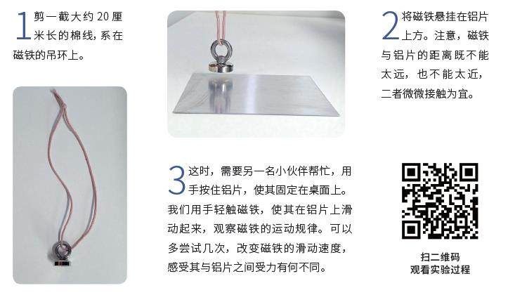 磁力刹车是游乐场中过山车采用的一种新型刹车装置,工作效应比靠摩擦力刹车更稳定。磁力刹车靠的是“同性相斥、異性相吸”的磁力吗?答案是否定的。让我们一起动手制作一个简易装置,模拟磁力刹车的工作过程,学习什么是磁力刹车吧!