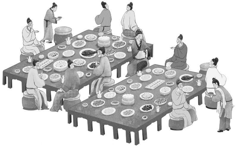 《史记·孟尝君列传》记载了这样一个故事:有一次,孟尝君招待宾客吃晚饭,有个仆从不小心挡住了灯光,一个宾客就多心了,以为这是在掩盖自己的饭食比别人少,站起来就要走。孟尝君见状,就亲自端着自己的饭食走到宾客面前给他看,证明大家的饭食都是一样的。那个宾客惭愧得无地自容。可以看出,古人不但讲究食物规格,而且都很“要脸面”。后来的秦汉和魏晋南北朝,基本也保持著这种分餐制传统。