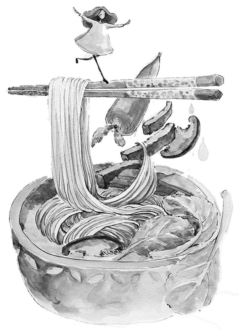 我和宁宁再次见面已是数年之后,我们依旧约在了那家店。那个路口已经开始修地铁,店面依旧,但已不卖大盘鸡,改成了炝锅鱼店。那几年大街小巷流行吃各种鱼,吃完炝锅鱼的人们,都会要上一份手工扯面。这家鱼庄生意也很红火,扯面师傅都推着手推车,站在食客面前秀才艺。粗粗的扯面劲道、入味,在吃鱼吃到腻的时候,及时出现,恰到好处。