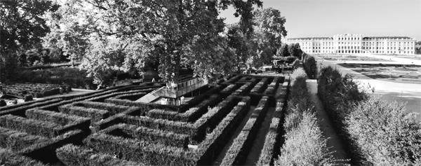 这类树篱迷宫通常出现于宫廷建筑及贵族宅邸,一般有很多岔路、死路、错路,旨在让人在柳暗花明的“犯错”过程中获得乐趣。从其德语“irrgarten”(直译为“犯错花园”)中便可见一斑。迂回曲折的树篱迷宫是作家描述惊悚故事的绝佳舞台。另一个更广为人知的例子出现在《哈利·波特与火焰杯》中,三强争霸赛的最后一场就是在一片危机四伏的树篱迷宫里寻找奖杯。