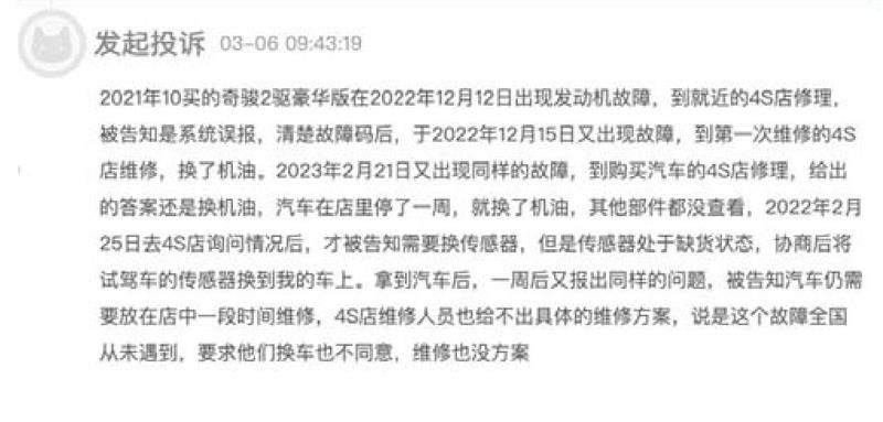 而他的另一辆车,在跑了两万公里后,出现了漏电的情况,更换电池后问题仍没有解决,并且在此过程中,其车灯被无故损坏。然而,当地4S店拒不承认此事,拒绝维修,其多次致电公司总部,均没得到答复。