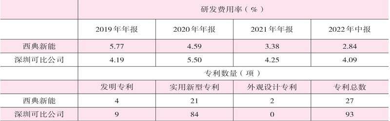 表2 西典新能及深圳可比公司的研发及专利情况