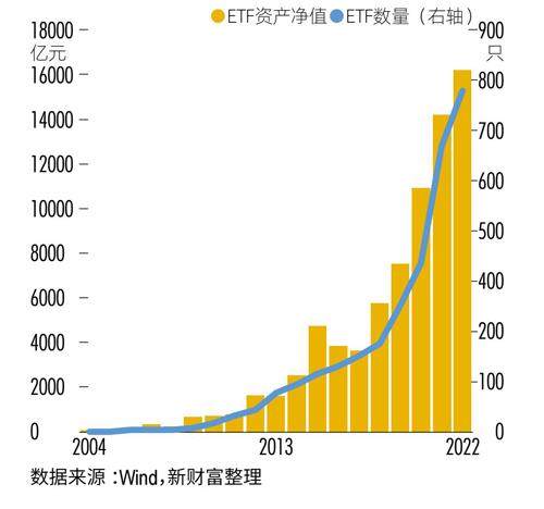 ETF已从沉寂走向爆发,2019年至今,其发行规模是此前15年的1.75倍,2022年份额劲增41%。