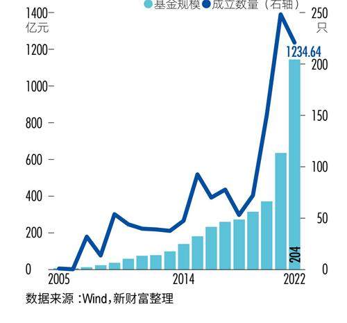 从基金数量看,新财富统计显示,截至2022年底,国内共有204只存续的ESG相关主题的公募基金(图1),较2021年底新增85只,数量增长71.43%。不过,受A股市场低迷影响,ESG公募基金的资产规模同比下降12.82%,为1234.64亿元。