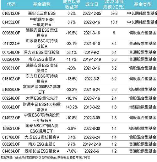 2013年,首只ESG主题公募基金⸺财通中证ESG100指数增强A成立,截至2022年底,其规模为1.76亿元,成立以来回报率为140.18%。