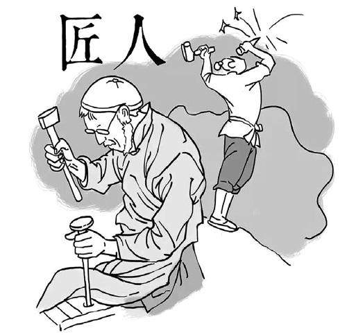 在社会上常听到叫某人为“大师”,有时是尊敬,有时是吹捧。又常不满于某件作品,说有“匠气”。匠人与大师到底有何区别?大致有三点。