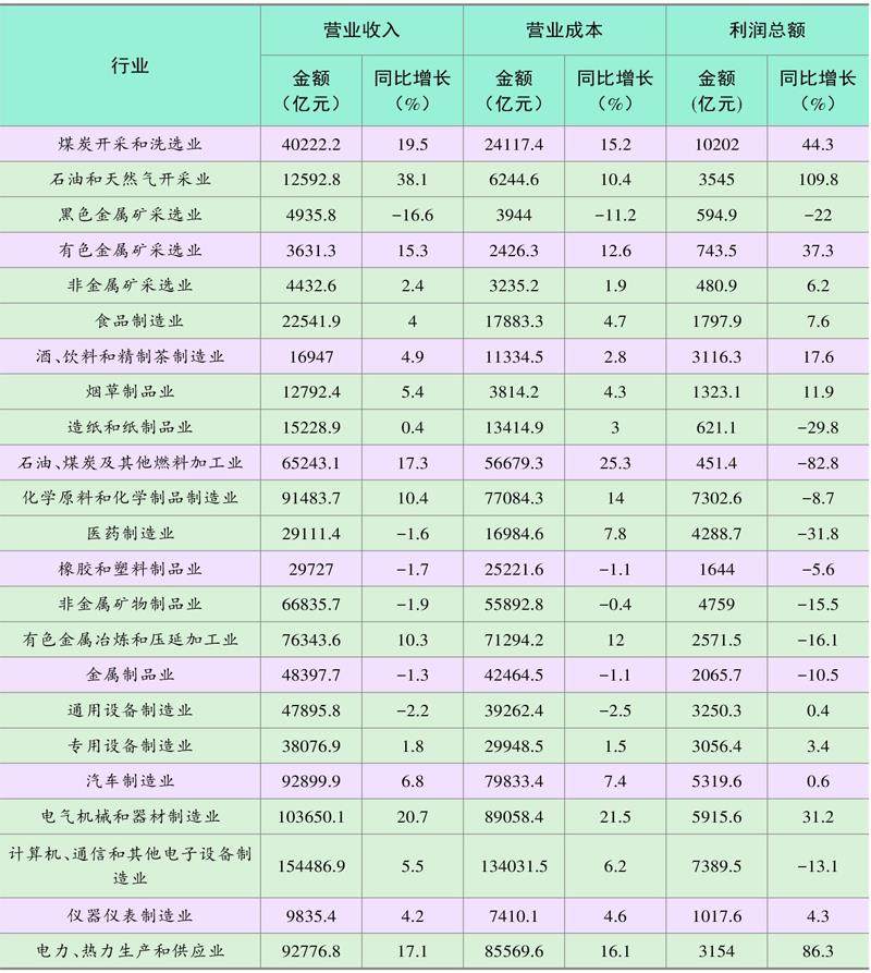 从国家统计局公布的2022年规模以上工业企业主要财务指标来看,利润同比增长较快的行业有石油天然气开采行业、电力热力生产和供应业、煤炭开采和洗选业、有色金属矿采选业、电气机械和器材制造业以及酒饮料和精制茶制造业。