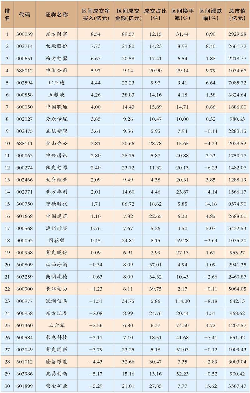 北向资金前30大活躍个股(2023年3月30日-4月12日)