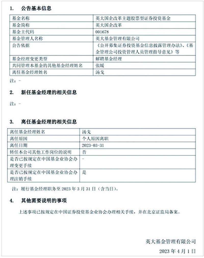 但汤戈出走,市场反应不小。毕竟英大国企改革能顺利捧杯,其功不可没。
