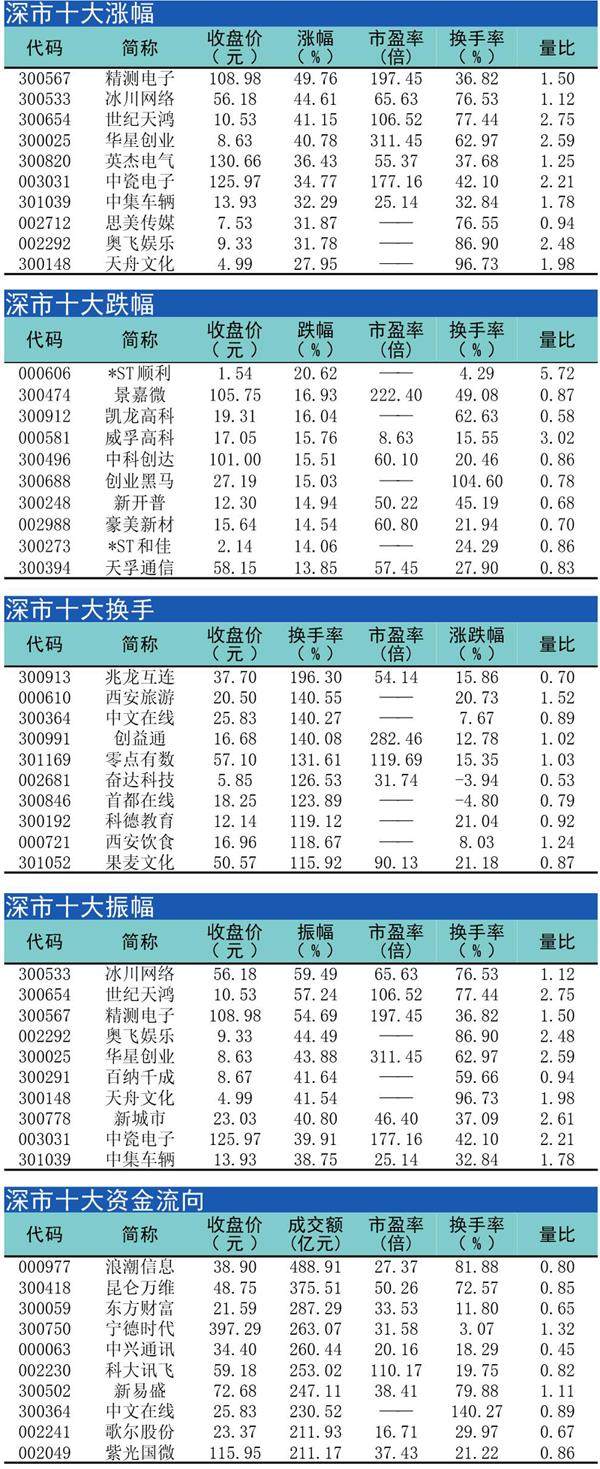 深市十大漲幅