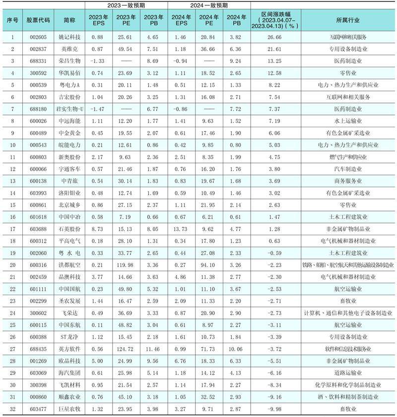 分析师一致预期大幅调高个股(统计截止股日:2023-04-13)