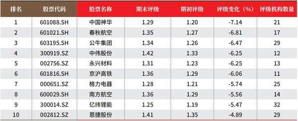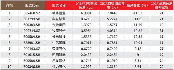 近一周(2023年报告期)业绩预测下降幅度前10名