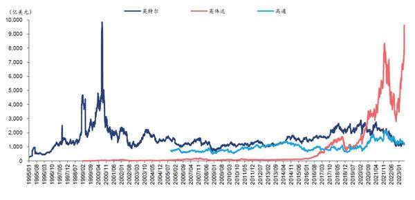 财报发布后,英伟达盘后最高涨幅一度高达30%。5月25日,英伟达股价保持高开高走,市值在一个交易日内暴涨1840亿美元,达9392亿美元;5月30日,英伟达盘中市值一度突破1万亿美元,成为继续苹果(AAPL)、微软(MSFT)、谷歌母公司字母表(GOOGL)以及亚马逊(AMZN)之后,美国第五家市值突破1万亿美元的上市公司。