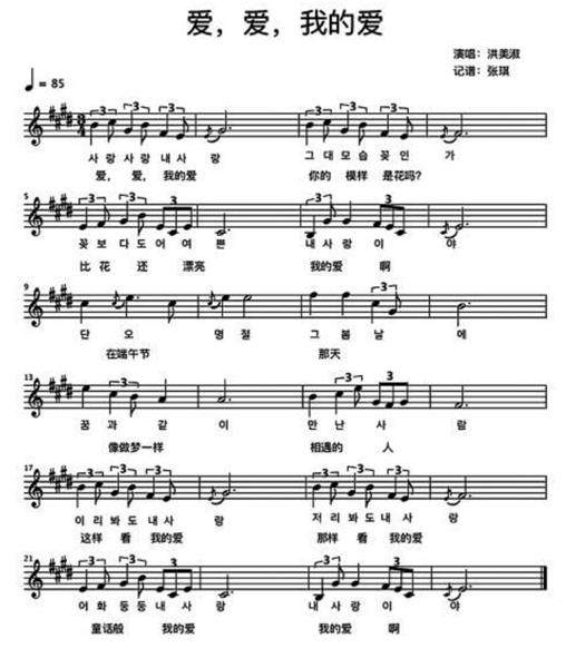 在2020年至2022年期间,笔者分别采访过居住在齐齐哈尔、牡丹江、延吉等地,年龄在40至80岁之间的朝鲜族居民,居住在齐齐哈尔的朝鲜族人相较其他两地有更多从韩国迁入的,他们的婚礼受汉族的影响更深一些。在提到传统婚礼的过程中,他们大都表示“我们那时候的婚礼比较简单,就是穿民族服饰、摆大桌。”[2]在大桌仪式后新人入席,会互相敬酒、交杯喝酒,这里还能够看到传统仪式中交拜礼、合卺礼的部分痕迹,在婚礼当天的晚上,来参加仪式的宾客会一起即兴跳舞唱歌,这时多会选择活泼、欢快、有动感的音乐,如《阿里郎》《桔梗谣》《汉江水打铃》《诺多尔江边》等,从歌曲的选择中可以发现该地区婚礼音乐多为朝鲜族经典曲目。牡丹江朝鲜民族艺术馆中的朱京国主任说“我们的婚礼已经很现代了,最多就是穿民族服饰和摆大桌,并没有什么特定的音乐,就是唱些朝鲜族的经典歌曲。”[3]在此基础上当提到具体的歌曲名字时,牡丹江市海林市的文庆泽老师提到“像《汉江水打铃》《诺多尔江边》这些是韩国那边的。”[4]在婚礼中唱跳时会有敲击碗碟的行为,起到固定节奏节拍的作用。延吉的洪美淑老师还提到“我们举行的传统婚礼主要就是奠雁礼、交拜礼与合卺礼,其中最主要的音乐就是朝鲜艺术歌曲《爱,爱,我的爱》。”[5]仪式与音乐相生相伴,成为仪式活动的隐性表征。