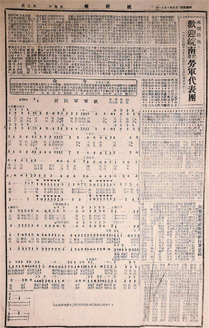 “李老师的父亲曾与何士德一起,在新四军战地服务团里教战士们唱歌。许多年轻人加入新四军后的第一件事就是学唱这首军歌。在皖南事变中,李老师的父亲不幸受了重伤,队伍也被打散。他只好隐匿在当地老乡家中養病,后来就在当地的学校里教音乐了。”
