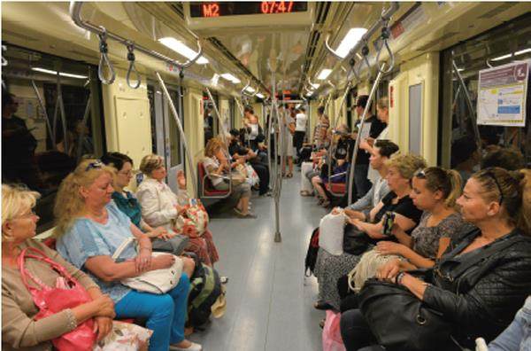 在转线的那个站,芭芭拉又站起来说“Follow me”,把我带到了另外一条地铁线。“这是老车厢……苏联人留下的……”她又很吃力地用英语跟我说。