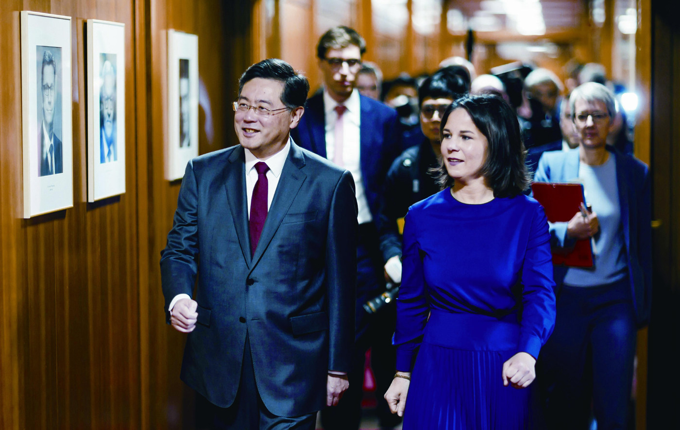 北京对欧盟委员会主席冯德莱恩“去风险论”的回击, 似乎稍稍来得晚了一些。中国国务委员兼外交部长秦刚5月9日在柏林同德国外长贝尔伯克共同会见记者时对“去风险论”进行了猛烈的抨击。