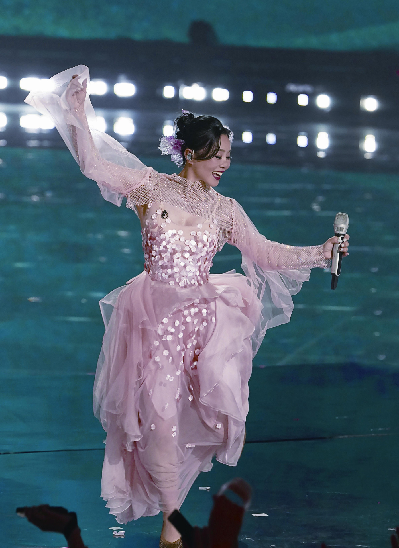 龚琳娜,正在勇敢地把它拔出来。