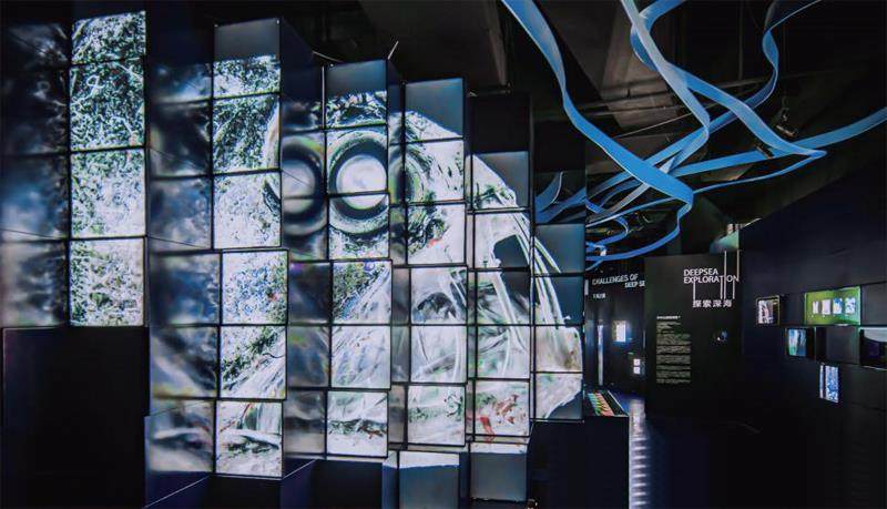 从浅海到深海、从微型海洋生物到深海巨兽、从水体到海底、从古老海洋探险到未来科技展望,深海探索馆以沉浸式的声光电展示技术,带给参观者全新的深海体验。