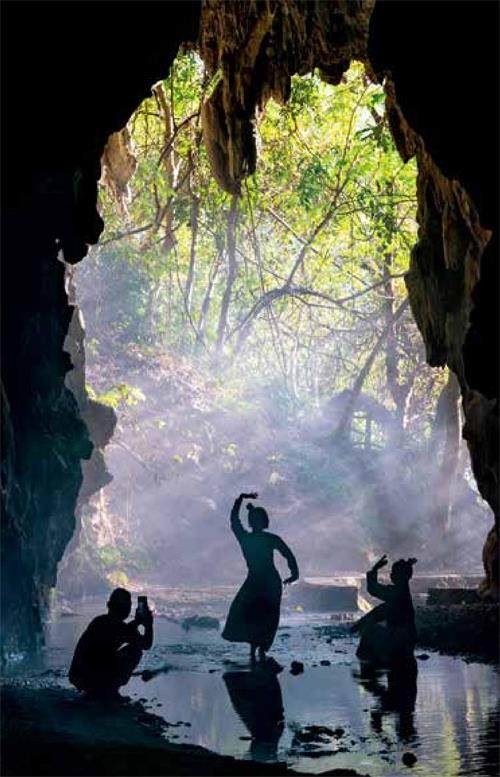3月23日,耿马县民族歌舞团团长王峰(左)在拍摄傣族女创拳小视频。新华社记者胡超摄