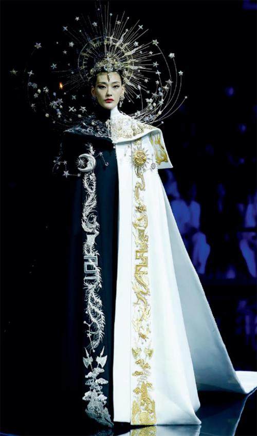之后熊英进入服装领域后,她更是从来不会把服装只单纯地看作服装。“我总认为服装是文化第一面的代表。到任何一个国家,第一眼看到的除了这个国家的建筑,其实最有特色的是当地人所穿戴的服饰,它们展现了当地最浓缩的文化特点。所以过去我用舞台总结,现在我用服装来呈现。在把我过去的经历融到服装设计里去的时候,我会发现这些经历在服装里面会产生一个非常好的量变。服装给我的受众带来的不再只是一件衣服,而是对他自身内涵和精神的一种外化的展现。在进入服装设计之前和之后,其实我都在做同一件事情,就是在做舞台。做国家对外展示的舞台和做个人对外展示的舞台,它们是一脉相承的。国家展示的舞台可以通过一场晚会,通过一个又一个人的妆发服饰,或者通过灯光等等综合效果达到。而个人展示的舞台,则需要是通过服装。对于个人展现,熊英·盖娅传说(HEAVEN GAIA)品牌也越来越完善,包括多场景展示。当品牌受众穿上一件件设计好的作品的那一刻起,周边的这一尺方寸就是他的舞台,品牌为每个人创造了一个小舞台,而这个小舞台对他们来说很重要。”