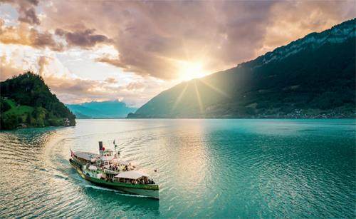 图恩湖和布里恩茨湖被伯尔尼高地的群山环抱,两湖水域相通,但水的色彩截然不同,是一湾极具神秘色彩的湖水。以意为“两湖之间”的因特拉肯为中心,图恩湖和布里恩茨湖正好对称在因特拉肯两边。在图恩湖上,尽情享受湖岸上美丽的城堡景色。而从因特拉肯到布里恩茨的这段距离,可以乘坐到历史悠久的蒸汽船。