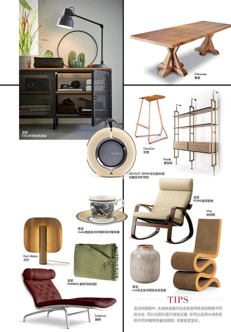 與大自然联系的事物总会让我们感觉很舒服,就如从大自然中提取的色彩,都能营造一种安全和温暖的感受—而大地色系是最接近人间的烟火色,能给家带来安定感。