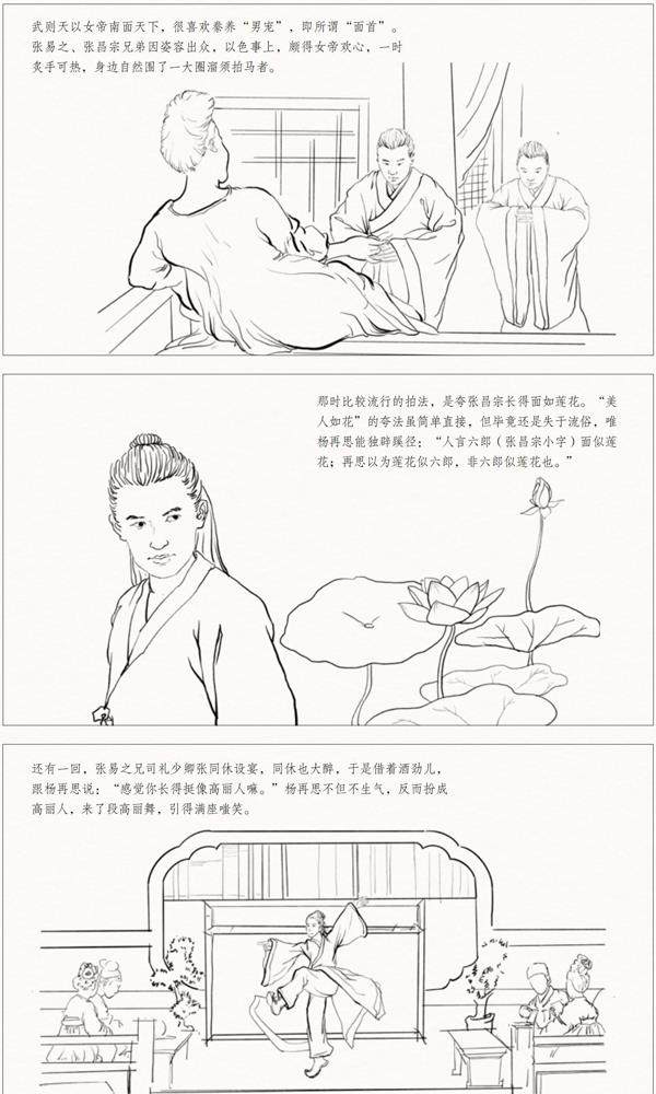 当时,武则天以女帝南面天下,喜欢豢养男宠。要成为当红男宠,首要条件当然是能够拿得出手的姿容。张易之、张昌宗兄弟因姿容出众,以色事上,颇得女帝欢心,一时炙手可热,身边自然围了一大圈溜须拍马者。