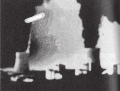 照片是1971年3月,在美国海军潜水艇海参号(SSN674)上拍摄的,地点是北冰洋海域,据说位于冰岛和洋马延岛之间。信息显示,从1971年2月22日到3月22日,在北极的冰冠之下,包括海参号在内的核攻击潜艇进行了演习。从照片上可以清楚地看到,圆筒形物体燃烧后掉落在海中。据推测是遭受了来自全副武装的海参号的攻击。