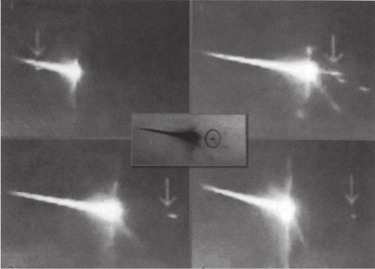 2013年2月15日上午9时多,在俄罗斯乌拉尔联邦区的捷利雅宾斯克州附近,伴随着轰鸣声,大量陨石碎片纷纷坠落。之后,俄罗斯航天局发表了“UFO被击落!”的报道。在验证影像中,捕捉到了UFO被某种小物体从后方中间贯穿过去,之后坠落并爆炸飞散开来。击落UFO的可能就是雅库特的拦截系统。