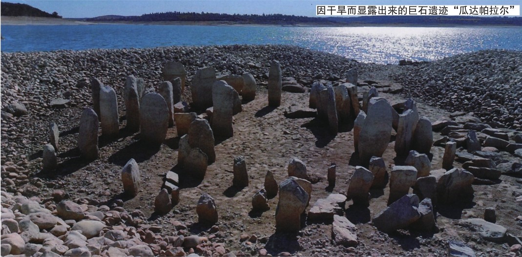 2022年夏天,西班牙遭遇破纪录的酷暑和干旱,位于艾斯特雷马杜拉州的巴尔德卡尼亚斯水库水位严重下降,沉没的史前时代巨石遗迹从而显现出来。这就是被称作“西班牙巨石阵”的“瓜达帕拉尔”。