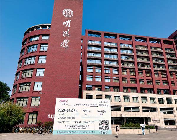 6月,正值毕业季,鲜花盛开,树影婆娑。记者走进中国人民大学,三三两两的毕业生身着以人大红为底色的新版学位服,在红砖红墙的明德楼前拍照留念,欢声笑语,青春洋溢。