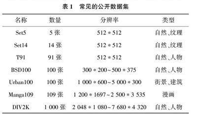 在超分辨率重建算法的研究中,为了评估算法的性能和效果,需要使用一些公开的数据集进行测试和比较。表1 列举了较为常见的几个公开数据集,其被广泛应用于单图像超分辨率重建的算法研究和评估中。