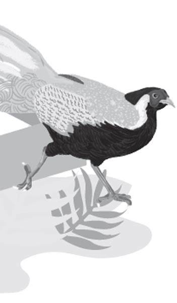 白鹇是国家二级保护动物,雄鸟体长100厘米至119厘米,雌鸟体长58厘米至67厘米,成鸟体重一般在1.5千克至2.5千克,是一种体态高雅的大型珍禽,它亮丽的踪影出现在广东、广西、云南、四川、福建等地的原始山林里。白鹇全身以白色为主调,所以又有“银雉”之说。它的脸和腿脚呈鲜红色,羽冠和胸腹部呈藏蓝色,红、白、蓝三种色彩形成鲜明的对比,色调清新,别具一格。特别是它的脸颊上长有一块鲜红的天鹅绒般的肉质冠,十分醒目。