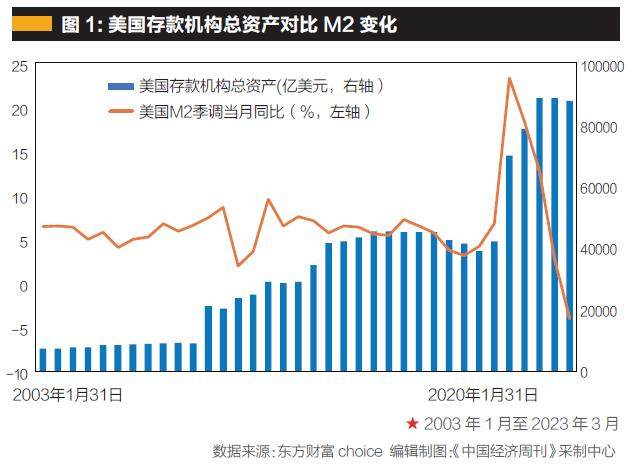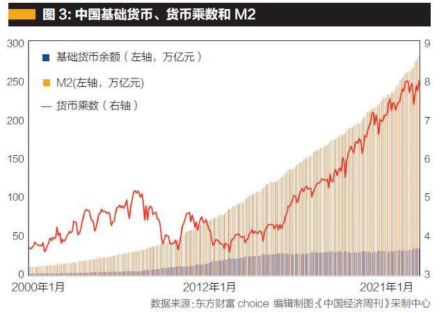 如此改革的结果是什么?货币乘数大幅下降,这意味着金融周转速度不断减低,金融运行周期(金融产品期限)大幅提升。第一,基于M2=基础货币×货币乘数,基础货币大幅提高,而货币乘数降低,以致美国广义货币供应量(M2)增长率不升反降,正如图1所示,2010年到2019年,美联储注入海量基础货币(蓝柱)同时,美国M2增速(黄线)不升反降。