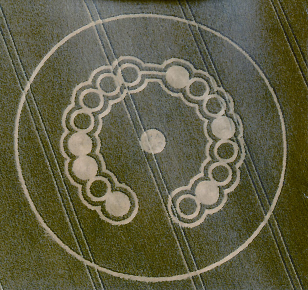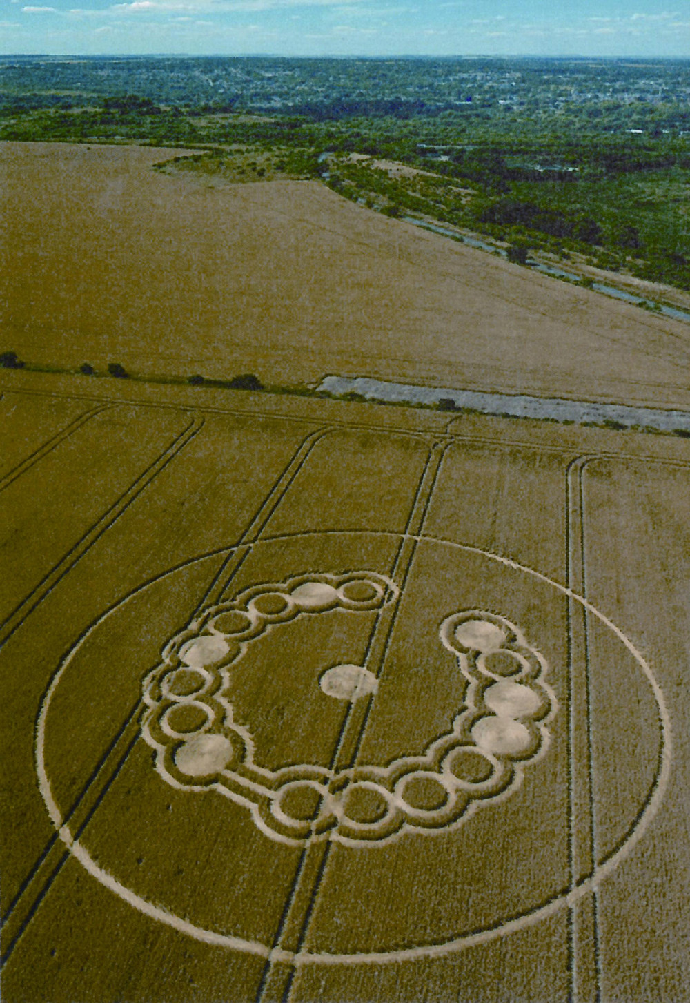 7月12日,在汉普郡的温彻斯特出现这样的怪圈:在直径60米的圆圈内,共计16个倒伏的圆环和环状的圓环,连成一串。这是西藏的“玛拉念珠”的形状,每个圆圈都是“ASCII”码,写着“欧姆”(OM=AUM)。而且,上方似乎呈现头盖骨的样子,据说是为了让祷语在头盖骨的内部回响,促进松果体的活性化和知觉的觉醒。