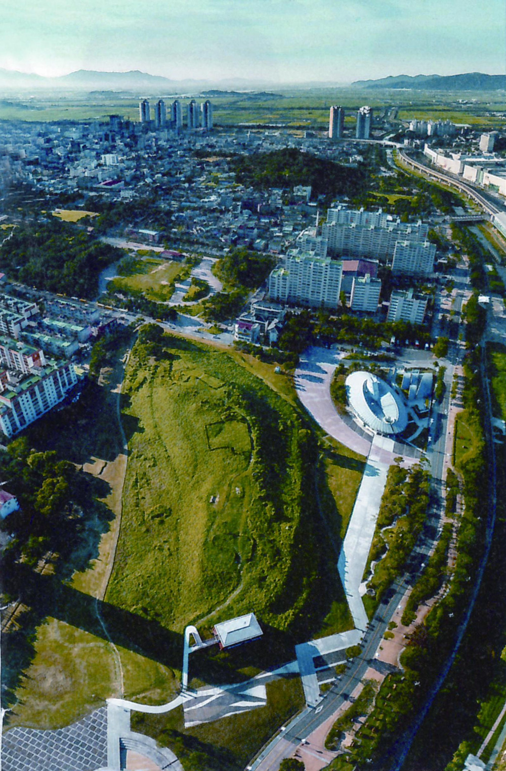 那里是可以一览大加耶都城高灵的地方。特别引人注意的是殉葬墓的存在。以44号墓为例,直径25米~27米的圆形坟墓中心有主石室和2座副石室,周围有32座殉葬墓。国王死后,有30多人殉葬,这说明加耶王拥有强大的权力。另外,池山洞32号墓出土的陪葬品中有倭系的甲胄,这暗示了大加耶与倭之间有着活跃的交流。