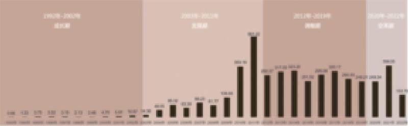 报告开篇即细数了我国文物艺术品拍卖市场的发展历程,展示了我国文物艺术品拍卖市场从无到有、从萌芽到变革的各个阶段。20世纪80年代中后期,我国文物艺术品拍卖市场正式进入萌芽期(20世纪80年代至1991年),而后又主要经历了成长期(1992年至2002年)、发展期(2003年至2011年)、调整期(2012年至2019年)和变革期(2020年至2022年),在各个阶段均取得了显著发展成就。