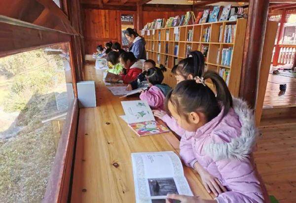 两位年轻有为的村干部将我从狭小的县城接到村里,是一个寒冷的下午。一下车我便看到了篮球场北侧的“侗见”空间——一栋古色古香的木楼。走进其间,西侧是几面满满的书墙,红色的杉木柱子间,点缀着纤细的竹篾吊灯。在二楼的春芽图书馆里,混合着杉木松香味和书香的升降式阅读平台上,摆放着一排排好看的少儿图书。得益于几个公益组织的参与,原来闲置的旧村部楼,被打造成了可供孩子们看书学习的图书馆,并在多方助力之下募集了9000多册书。尽管获得了大量的捐赠图书,但因无人编目,无人借阅,这么多宝贝,只能成包成捆地躺在库房里“睡觉”。