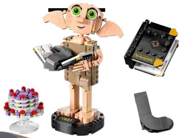 “多比”雕像高19厘米,是哈利·波特系列中最可爱的角色之一,这位家庭精灵拥有了自己的乐高玩具套件。乐高“多比房屋精灵”的构件是为8岁以上的儿童设计的,使用了403块乐高组件。精灵有几个独特的设计细节:首先,它有可动的四肢、可旋转的头、可调节的耳朵、可活动的手指。其次,这些手指可以实现让“多比”指着物体,打个响指,甚至抓住一些东西等操作。